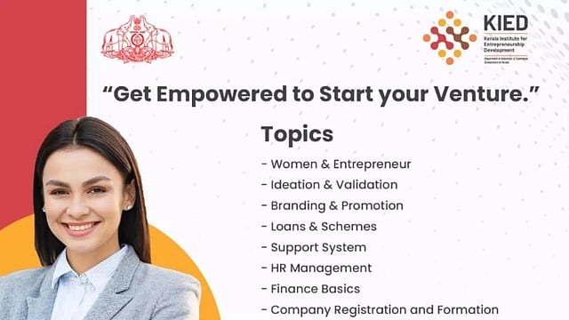 സംരംഭകരാകാന് ആഗ്രഹിക്കുന്ന വനിതകള്ക്കായി വ്യവസായ-വാണിജ്യ വകുപ്പ് പരിശീലന പരിപാടി സംഘടിപ്പിക്കുന്നു. വകുപ്പിന് കീഴിലുള്ള സംരംഭകത്വ വികസന ഇന്സ്റ്റിറ്റ്യൂട്ടായ കേരള ഇന്സ്റ്റിറ്റ്യൂട്ട് ഫോര് എന്റര്പ്രണര്ഷിപ് ഡെവലപ്മെന്റാണ് (KIED) 10 ദിവസത്തെ വനിതാ സംരംഭകത്വ വികസന പരിപാടി (Women Entrepreneurship Program) സംഘടിപ്പിക്കുന്നത്.