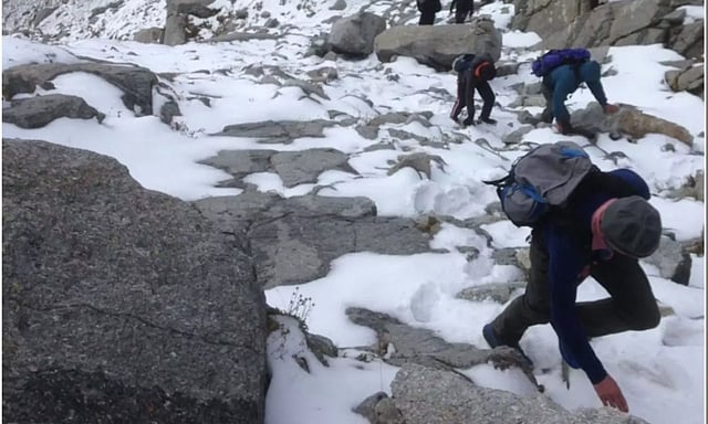 സ്നോലൈന് വരെ യാത്ര കുറച്ച് എളുപ്പമായിരുന്നു. എന്നാല് ട്രെക്കിന്റെ രണ്ടാം ദിവസം രണ്ടു മൂന്നു മണിക്കൂര് പിന്നിട്ടപ്പോള് കാര്യങ്ങള് ബുദ്ധിമുട്ടായിത്തുടങ്ങി.