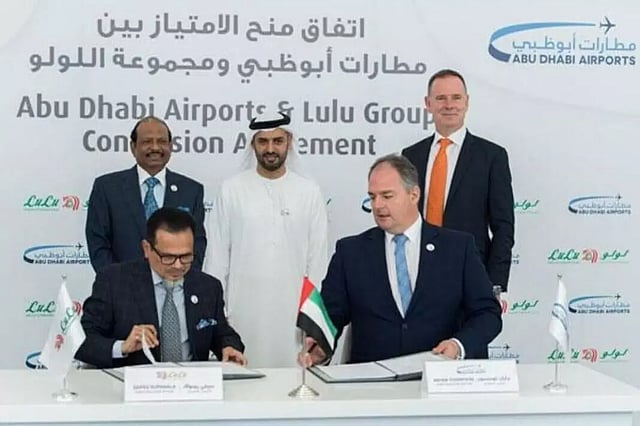 ഗള്ഫ് മേഖലയിലെ ഏറ്റവും വലിയ വിമാനത്താവള ടെര്മിനലുകളില് ഒന്നായ അബുദാബി മിഡ്ഫീല്ഡ് ടെര്മിനലില് ലുലു ഗ്രൂപ്പ് ഹൈപ്പര് മാര്ക്കറ്റ് തുറക്കും. ഇതിനായുള്ള കരാറില് ലുലു ഗ്രൂപ്പ് സി.ഇ.ഒ സൈഫി രൂപാവാല, അബുദാബി എയര്പോര്ട്ട് കമ്പനി സി.ഇ.ഒ ബ്രയാന് തോംസണ് എന്നിവര് ഒപ്പുവച്ചു.