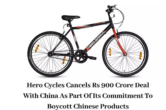 ഇന്ത്യയിലെ പ്രമുഖ സൈക്കിള് നിര്മാതാക്കളായ ഹീറോ സൈക്കിള്സ് ചൈനയുമായുള്ള 900 കോടി രൂപയുടെ കരാര് റദ്ദാക്കിയതായി റിപ്പോര്ട്ട്. കമ്പനി ചൈനയുമായി 900 കോടി രൂപയുടെ ബിസിനസ്സ് നടത്താന് തീരുമാനിച്ചിരുന്നെങ്കിലും ചൈനീസ് ഉല്പന്നങ്ങള് ബഹിഷ്കരിക്കുന്നതിന്റെ ഭാഗമായി ആ പദ്ധതികള് റദ്ദാക്കിയതായി കമ്പനി ചെയര്മാനും മാനേജിംഗ് ഡയറക്ടറുമായ പങ്കജ് മുഞ്ജല് ആണ് വെളിപ്പെടുത്തിയത്.
