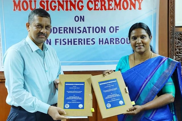 കൊച്ചിയിലെ മത്സ്യബന്ധന തുറമുഖം നവീകരിക്കാന് 140 കോടി രൂപയുടെ പദ്ധതിരേഖയില് സമുദ്രോത്പന്ന കയറ്റുമതി വികസന അതോറിറ്റി(എംപിഇഡിഎ)യും കൊച്ചിന് പോര്ട്ട് ട്രസ്റ്റും ഒപ്പിട്ടു. നിരവധി പുതിയ സംവിധാനങ്ങളോടു കൂടി നവീകരിക്കുന്ന കൊച്ചി തുറമുഖം സജ്ജമാകുന്നതോടെ മത്സ്യബന്ധനത്തിനു ശേഷം വരുന്ന നഷ്ടങ്ങളില് കുറവുണ്ടാകുമെന്നാണ് പ്രതീക്ഷ. വിവിധ കേന്ദ്രപദ്ധതികളില് നിന്നാണ് തുറമുഖ നവീകരണത്തിനായുള്ള 140 കോടി രൂപ കണ്ടെത്തുന്നതെന്ന് എംപിഇഡിഎ ചെയര്മാന് കെ എസ് ശ്രീനിവാസ് പറഞ്ഞു. കൊച്ചിന് പോര്ട്ട് ട്രസ്റ്റ് ചെയര്മാന് ഡോ. എം ബീനയും കെ എസ് ശ്രീനിവാസും ഇതു സംബന്ധിച്ച ധാരണാപത്രത്തില് ഒപ്പു വച്ചു. വികസന പദ്ധതികള് ഫലപ്രദമായി നടപ്പാക്കുന്നതിനു വേണ്ടി സ്പെഷ്യല് പര്പ്പസ് വെഹിക്കിളിന് രൂപം നല്കും.
