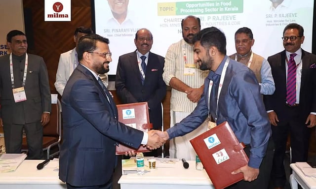 വ്യവസായമന്ത്രി പി. രാജീവ്, വ്യവസായ വകുപ്പ് പ്രിന്സിപ്പല് സെക്രട്ടറി സുമന് ബില്ല, ലുലു ഗ്രൂപ്പ് ചെയര്മാന് എം.എ. യൂസഫലി, മില്മ ചെയര്മാന് കെ.എസ് മണി എന്നിവരുടെ സാന്നിധ്യത്തില് കെ.സി.എം.എം.എഫ് എം.ഡി ആസിഫ് കെ യൂസഫും ലുലു ഗ്രൂപ്പ് ഡയറക്ടര് സലിം എം.എയുമാണ് ധാരണാപത്രത്തില് ഒപ്പിട്ടത്. ഡല്ഹി പ്രഗതി മൈതാനത്ത് നടക്കുന്ന വേള്ഡ് ഫുഡ് ഇന്ത്യ 2023 സമ്മേളനത്തിലാണ് പുതിയ ധാരണാ പത്രം ലുലു ഗ്രൂപ്പ് ഒപ്പുവച്ചത്.