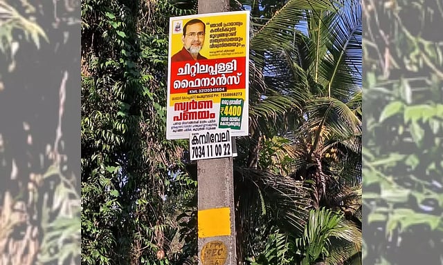 പെരുമ്പടവ് മലബാര് കോംപ്ലക്സിന്റെ വിലാസത്തിലുള്ള ചിറ്റിലപ്പിള്ളി ഫൈനാന്സ് എന്ന സ്ഥാപനം ഇലക്ട്രിക് പോസ്റ്റുകളിലും മറ്റും സ്ഥാപിച്ചിരിക്കുന്ന പരസ്യ ബോര്ഡില് കൊച്ചൗസേപ്പ് ചിറ്റിലപ്പിള്ളിയുടെ പേരും ഫോട്ടോയുമാണ് ഉപയോഗിച്ചിരിക്കുന്നത്. ''ഞാന് പ്രാധാന്യം കല്പ്പിക്കുന്ന മൂല്യങ്ങളാണ് സത്യസന്ധതയും വിശ്വസ്തതയും'' കൊച്ചൗസേപ്പ് ചിറ്റിലപ്പിള്ളി, ചെയര്മാന്, ചിറ്റിലപ്പിള്ളി ഫൗണ്ടേഷന് എന്ന വാചകം പരസ്യത്തിനൊപ്പം ചേര്ത്തിട്ടുണ്ട്.