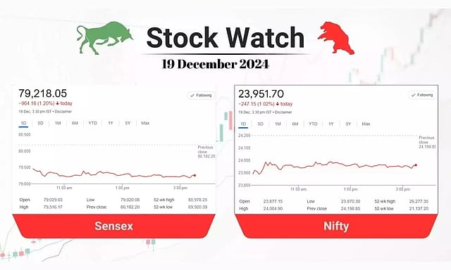 തുടര്ച്ചയായ നാലാം ദിവസവും ഓഹരി വിപണിയില് നഷ്ടക്കച്ചവടം. അമേരിക്കന് ഫെഡറല് റിസര്വ് നിരക്ക് കുറക്കല് 2025ല് പരിമിതപ്പെടുത്തുമെന്ന വാര്ത്തകളാണ് വിനയായത്. പ്രധാന സൂചികയായ സെന്സെക്സ് 1.2 ശതമാനം ഇടിഞ്ഞ് 79,218.05 എന്ന നിലയിലാണ് ഇന്നത്തെ വ്യാപാരം അവസാനിപ്പിച്ചത്. നിഫ്റ്റിയാകട്ടെ 1.02 ശതമാനം ഇടിഞ്ഞ് വ്യാപാരാന്ത്യം 23,951.7 പോയിന്റെന്ന നിലയിലെത്തി. അവസാന നാല് ദിവസത്തെ നഷ്ടക്കച്ചവടത്തോടെ സെന്സെക്സിന് 3.5 ശതമാനവും നിഫ്റ്റിക്ക് 3.3 ശതമാനം ഇടിവ് നേരിട്ടു.