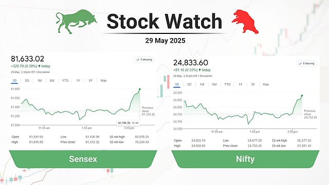 ഇന്ന് 320.70 പോയിന്റുകള് ഉയര്ന്ന സെന്സെക്സ് 81,633.02 എന്ന നിലയിലാണ് വ്യാപാരം നിറുത്തിയത്. ബി.എസ്.ഇയില് ലിസ്റ്റ് ചെയ്ത കമ്പനികളുടെ വിപണി മൂല്യം 445.47 ലക്ഷം കോടി രൂപയായി ഉയര്ന്നു. നിക്ഷേപകരുടെ പോക്കറ്റിലെത്തിയത് 84,562 കോടി രൂപ. നിഫ്റ്റിയാകട്ടെ 128.35 പോയിന്റുകള് (0.52%) ഉയര്ന്ന് വ്യാപാരാന്ത്യം 24,833.60ലെത്തി. നിഫ്റ്റി മിഡ്ക്യാപ് സൂചിക 0.55 ശതമാനവും സ്മോള്ക്യാപ് സൂചിക 0.59 ശതമാനവും നേട്ടത്തിലായി.