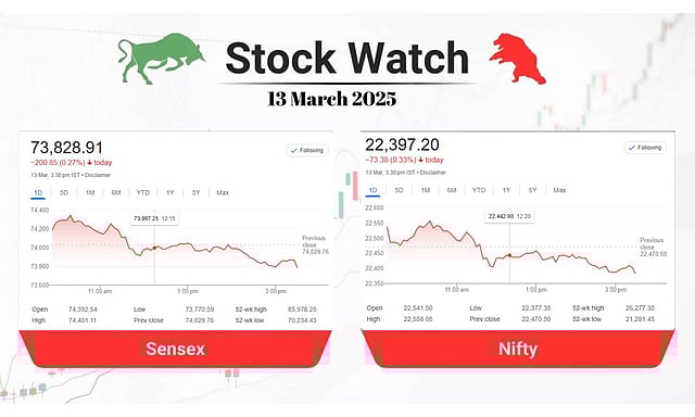 പ്രധാന ഓഹരി സൂചികയായ സെന്സെക്സ് 200.85 പോയിന്റുകള് (0.27 ശതമാനം) ഇടിഞ്ഞ് 73,828.91 എന്ന നിലയിലെത്തിയാണ് വ്യാപാരം നിറുത്തിയത്. നിഫ്റ്റിയാകട്ടെ 73.30 പോയിന്റുകള് (0.33 ശതമാനം) നഷ്ടത്തില് 22.397.20ലും വ്യാപാരം അവസാനിപ്പിച്ചു. തുടര്ച്ചയായ അഞ്ചാം ദിവസമാണ് നിഫ്റ്റിയുടെ നഷ്ടക്കച്ചവടം. നിഫ്റ്റി സ്മോള്ക്യാപ് സൂചിക 0.98 ശതമാനവും മിഡ്ക്യാപ് സൂചിക 0.75 ശതമാനവും നഷ്ടം നേരിട്ടു.