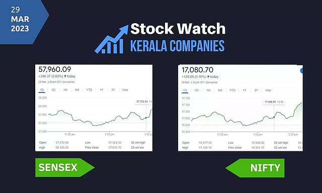 സെന്സെക്സ് 346.37 പോയിന്റുയര്ന്ന് 57960.09ലും നിഫ്റ്റി 129 പോയിന്റ് മുന്നേറി 17080.70ലുമാണ് ഇന്ന് വ്യാപാരം അവസാനിപ്പിച്ചത്. 2,173 കമ്പനികളുടെ ഓഹരിവില ഇന്ന് ഉയര്ന്നു. 1,345 കമ്പനികള് നഷ്ടത്തിലേക്ക് വീണു. 118 കമ്പനികളുടെ ഓഹരിവിലയില് മാറ്റമില്ല. ആഗോളതലത്തില് ആശങ്ക സൃഷ്ടിച്ച ബാങ്കിംഗ് പ്രതിസന്ധി ഒഴിയുന്നുവെന്ന വാര്ത്തകളും ഇന്ന് ഓഹരികള്ക്ക് കരുത്തായി.