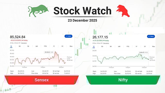 സെൻസെക്സ് 0.05 ശതമാനം (42.64 പോയിന്റ്) ഇടിഞ്ഞ് 85,524.84 ലും നിഫ്റ്റി 0.02 ശതമാനം (4.75 പോയിന്റ്) ഉയർന്ന് 26,177.15 ലും വ്യാപാരം അവസാനിപ്പിച്ചു.