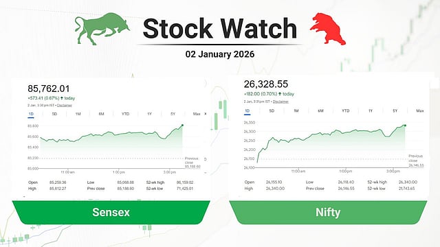 2026ലെ ആദ്യത്തെ വെള്ളിയാഴ്ച മോശമാക്കാതെ ഇന്ത്യന് ഓഹരിവിപണി. ഡിസംബറിലെ വാഹന വില്പന സംബന്ധിച്ച കണക്കുകള് പുറത്തുവന്നതും പ്രത്യാശയാര്ന്ന വ്യാപാര കരാറുകള് വൈകില്ലെന്ന നിഗമനങ്ങളും വിപണിക്ക് കരുത്തായി. സെന്സെക്സ് 573.41 പോയിന്റ് ഉയര്ന്ന് 85,762.01ല് ക്ലോസ് ചെയ്തു.