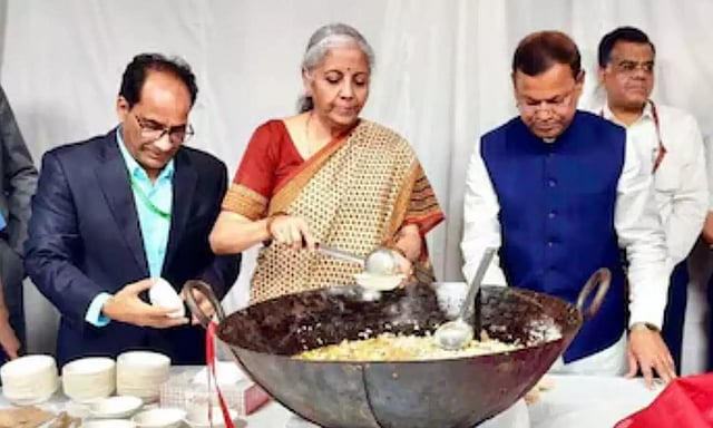 ആറ് മാസത്തോളം നീണ്ടുനില്ക്കുന്ന ബജറ്റ് തയ്യാറാക്കലിന്റെ അവസാന ഘട്ടങ്ങളിലൊന്നാണ് ഹല്വ സെറിമണി. ബജറ്റ് തയ്യാറാക്കാന് അഹോരാത്രം പണിയെടുത്ത ജീവനക്കാര്ക്കുള്ള നന്ദിപ്രകടനം കൂടിയാണിത്. ധനമന്ത്രി നേരിട്ടെത്തി മധുരം തയ്യാറാക്കി ജീവനക്കാര്ക്കും കേന്ദ്രമന്ത്രിമാര്ക്കും വിളമ്പുന്നതാണ് രീതി. ഹല്വ സെറിമണി തുടങ്ങിയതിന് പിന്നിലെ ചരിത്രത്തെക്കുറിച്ച് കൂടുതല് വ്യക്തതയില്ല.