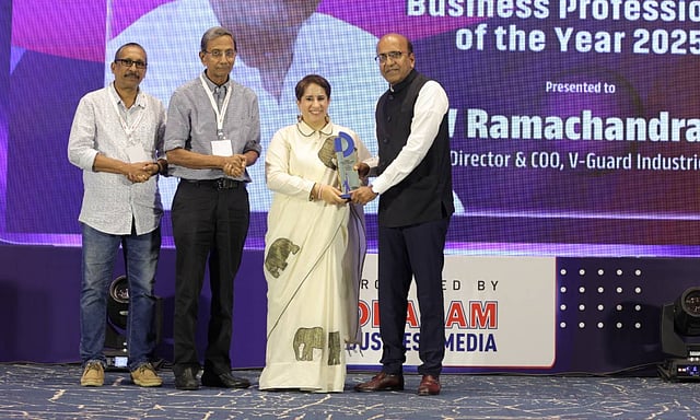 ധനം ബിസിനസ് പ്രൊഫഷണല് 2025 പുരസ്ക്കാരം വി ഗാര്ഡ് ഇന്ഡസ്ട്രീസ് ലിമിറ്റഡ് ഡയറക്റ്റര് & ചീഫ് ഓപ്പറേറ്റിംഗ് ഓഫീസര് വെങ്കട്ടരാമന് രാമചന്ദ്രന്. കൊച്ചി ലെ മെറിഡിയനില് നടന്ന ധനം ബിസിനസ് സമ്മിറ്റ് ആന്ഡ് അവാര്ഡ് നൈറ്റ് ചടങ്ങില് ഓസ്കാര് അവാര്ഡ് ജേതാവ് ഗുനീത് മോംഗയില് നിന്ന് രാമചന്ദ്രന് പുരസ്ക്കാരം ഏറ്റുവാങ്ങി.