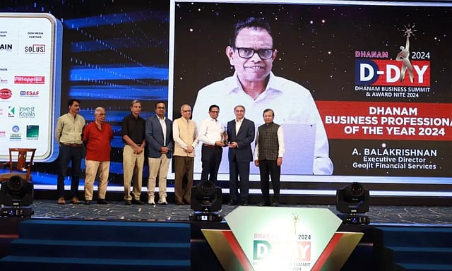 ധനം ബിസിനസ് പ്രൊഫഷണല് ഓഫ് ദി ഇയര് അവാര്ഡ് ജിയോജിത് ഫിനാഷ്യല് സര്വീസസ് എക്സിക്യൂട്ടിവ് ഡയറക്ടര് എ. ബാലകൃഷണന് ഏറ്റുവാങ്ങി. കൊച്ചി ലെ മെറിഡിയന് കണ്വെന്ഷന് സെന്ററില് നടന്ന ധനം ബിസിനസ് സമിറ്റ് ആന്ഡ് അവാര്ഡ് നൈറ്റില് ടാറ്റ സ്റ്റീല് ഗ്ലോബല് സി.ഇ.ഒയും മാനേജിംഗ് ഡയറക്ടറുമായ ടി.വി നരേന്ദ്രന് അവാര്ഡ് സമ്മാനിച്ചു. പ്രമുഖ സാമ്പത്തിക വിദഗ്ധന് വേണുഗോപാല് സി. ഗോവിന്ദ്, എല്.ഐ.സി മുന് മാനേജിംഗ് ഡയറക്ടര് ടി.സി സുശീല്കുമാര്, ധനം ബിസിനസ് മീഡിയ എക്സിക്യൂട്ടിവ് എഡിറ്റര് കെ.പി.എം ബഷീര് എന്നിവര് ചടങ്ങില് സംബന്ധിച്ചു.