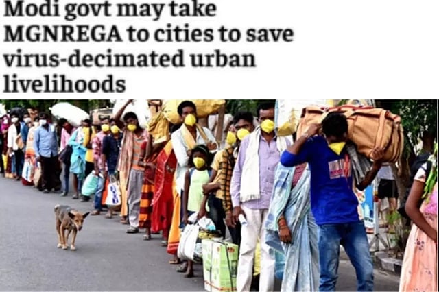 ഏഷ്യയിലെ ഏറ്റവും വലിയ മൂന്നാമത്തെ സാമ്പത്തിക ശക്തിയായ ഇന്ത്യ ചരിത്രത്തിലെ ഏറ്റവും വലിയ സാമ്പത്തിക പ്രതിസന്ധിയിലൂടെ കടന്നു പോകുമ്പോഴാണ് നഗരങ്ങളിലുള്ളവര്ക്ക് കൂടി വരുമാനം ഉറപ്പു വരുത്തുന്ന പദ്ധതിയെകുറിച്ചുള്ള ആലോചന ഉയരുന്നത്.