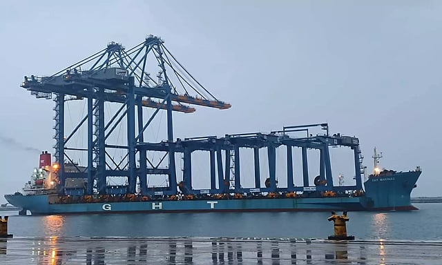 വിഴിഞ്ഞം അന്താരാഷ്ട്ര തുറമുഖത്ത് ക്രെയിനുകളുമായി വീണ്ടുമൊരു കപ്പലെത്തി. ഹെവി ലിഫ്റ്റ് വെസല് ഇനത്തില് പെട്ട ജി.എച്ച്.ടി മറീനാസ് എന്ന കപ്പലാണ് തുറമുഖത്തിന് ആവശ്യമായ 24ാമത് സി.ആര്.എം.ജി (കാന്റിലിവര് റെയില് മൗണ്ടഡ് ഗാന്ട്രി) ക്രെയിനുകളുമായി കേരള തീരമടുത്തത്. ചൈനയിലെ ഷാംഗ്ഹായ് തുറമുഖത്ത് നിന്നും ദിവസങ്ങള്ക്ക് മുമ്പാണ് കപ്പല് യാത്ര തിരിച്ചത്. ക്രെയിന് ഇറക്കിയ ശേഷം കപ്പല് നാളെയോടെ കൊളംബോ തീരത്തേക്ക് തിരിക്കുമെന്നും തുറമുഖ അധികൃതര് അറിയിച്ചു.