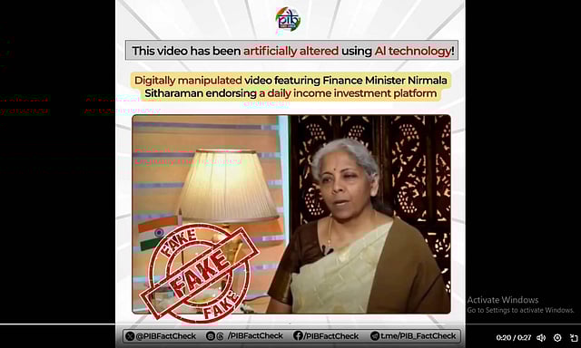 PIB fact-check clarifies that the viral investment video featuring Nirmala Sitharaman promising huge monthly returns is an AI-generated scam.