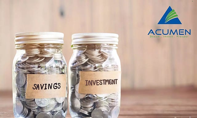 പിന്നീടുള്ള ആവശ്യത്തിന് പണം നീക്കിവെയ്ക്കുന്നതിനെയാണ് സേവിംഗ്സ് എന്നു പറയുന്നത്. അതായത് ബാങ്കിലോ പോസ്റ്റ് ഓഫീസിലോ ഒക്കെയുള്ള എക്കൗണ്ടില് പണമിടുന്നതിനെ സേവിംഗ്സ് എന്ന് പറയാം.നിശ്ചിത കാലാവധിയില് മൂല്യം കൂടുമെന്ന പ്രതീക്ഷയില് ഒരു ആസ്തി വാങ്ങുന്നതിനെയാണ് നിക്ഷേപം എന്ന് പറയുന്നത്. ഉദാഹരണം: ഓഹരി വാങ്ങുന്നത്, സ്ഥലം വാങ്ങുന്നത്, മ്യൂച്വല് ഫണ്ട് നിക്ഷേപം തുടങ്ങിവ.