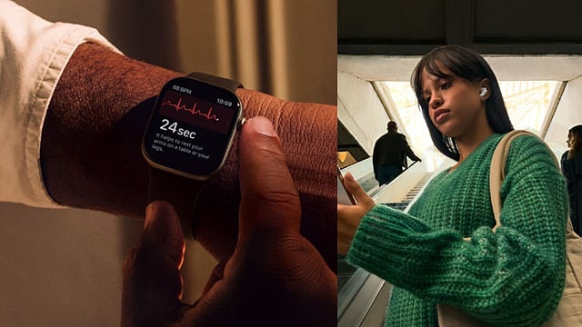 പുതിയ ഹെല്ത്ത്, എ.ഐ ഫീച്ചറുകളുമായി ആപ്പിള് എയര്പോഡ്സും വാച്ചും. 25,900 രൂപ വില വരുന്ന ആപ്പിള് എയര്പോഡ്സ് പ്രോ3 വെറുമൊരു ലിസണിംഗ് ഡിവൈസ് മാത്രമല്ലെന്നാണ് ആപ്പിളിന്റെ വാദം. ഹാര്ട്ട് റേറ്റ് മോണിറ്റര് അടക്കമുള്ള സംവിധാനങ്ങളും പുതിയ തലമുറ ആക്ടീവ് നോയിസ് ക്യാന്സലേഷനുമുള്ള എയര്പോഡ്സ് പ്രോയില് തത്സമയ തര്ജമയും ലഭിക്കും. അതായത് എയര്പോഡ്സ് ധരിച്ച രണ്ട് പേര്ക്ക് തമ്മില് ഐഫോണിന്റെ സഹായത്തോടെ വ്യത്യസ്ത ഭാഷകളില് ആശയവിനിമയം നടത്താം. എയര്പോഡിലൂടെ തര്ജമ ലഭിക്കുകയും അതിനുള്ള മറുപടി ഐഫോണിലൂടെ ടെക്സ്റ്റ് രൂപത്തില് നല്കുകയും ചെയ്യാം.