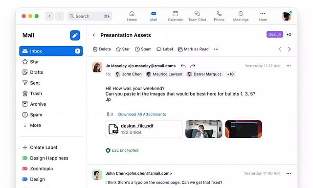 വിവിധ പ്ലാനുകള് അനുസരിച്ച് ഉപഭോക്താക്കള്ക്ക് 15 ജിബി മുതല് 100 ജിബി വരെയുള്ള സ്റ്റോറേജ് സൗകര്യവും സൂം മെയില് നല്കും. സൂമിന്റെ ഇമെയില് സേവനം എന്ട്-ടു-എന്ട് എന്ക്രിപ്റ്റഡ് ആയിരിക്കും. അതേ സമയം ഉപഭോക്താക്കള്ക്ക് മറ്റ് തേര്ഡ് പാര്ട്ടി ഇമെയിലുകള് സൂം ആപ്ലിക്കേഷനുമായി ബന്ധിപ്പിക്കുന്നതിന് തടസമുണ്ടാകില്ല.